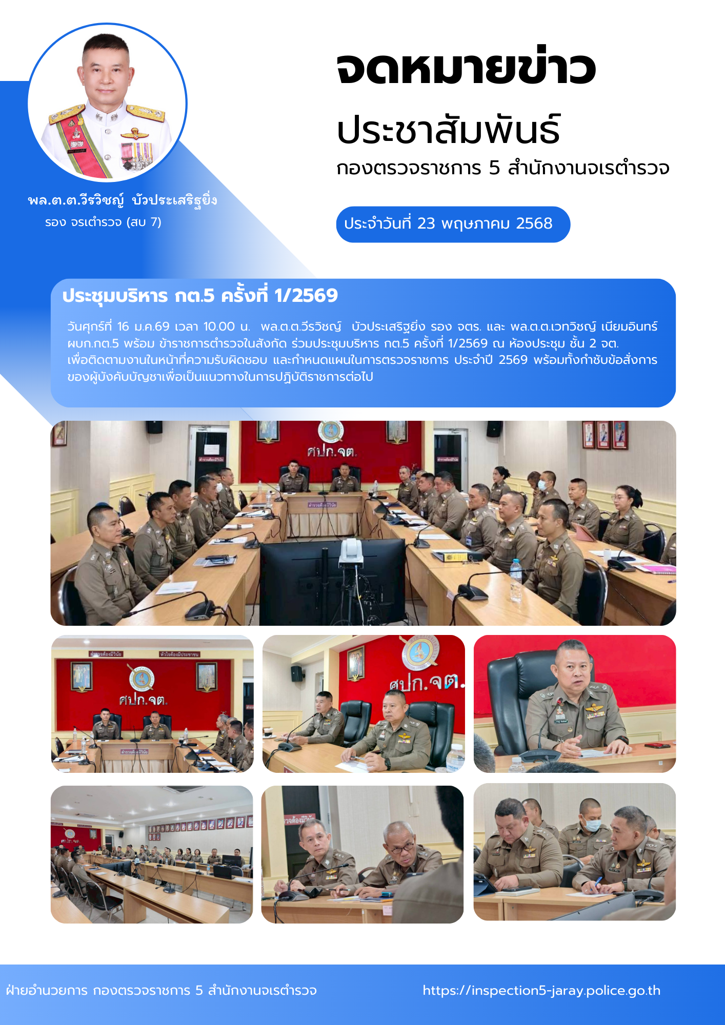 วันศุกร์ที่ 16 ม.ค.69 เวลา 10.00 น. พล.ต.ต.วีรวิชญ์ บัวประเสริฐยิ่ง รอง จตร. และ พล.ต.ต.เวทวิชญ์ เนี