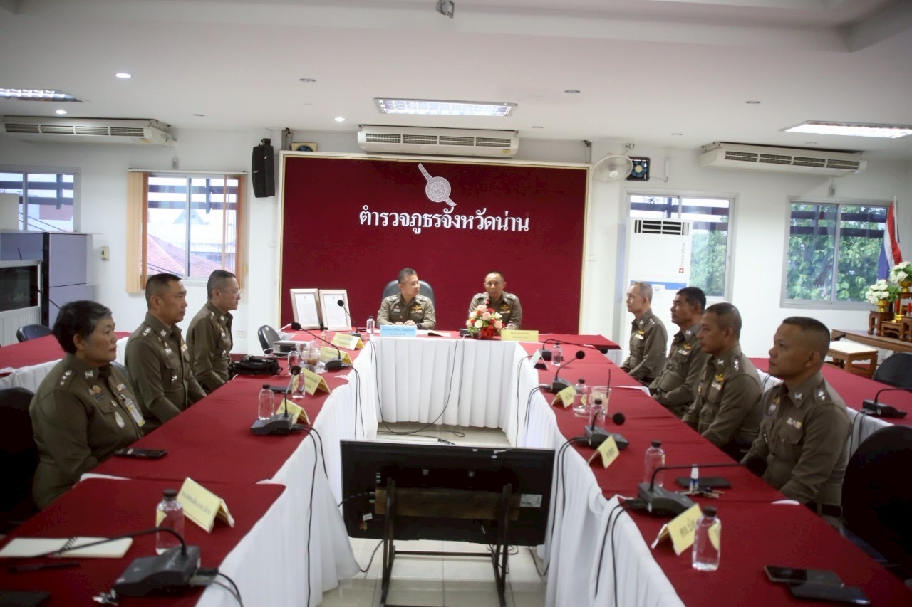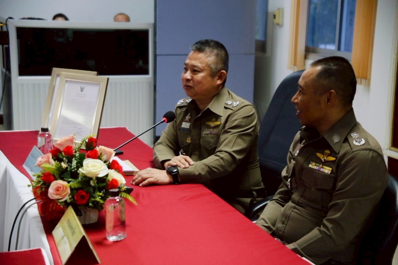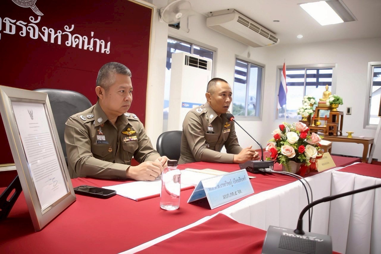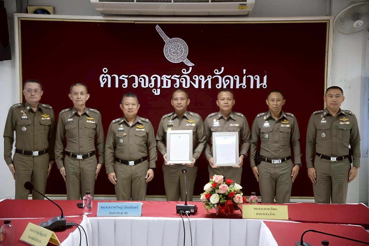วันที่ 23 พฤษภาคม 2568 เวลา 09.00 น. พล.ต.ต.เวทวิชญ์ เนียมอินทร์ ผบก.กต.5 จต. พร้อมด้วย พ.ต.อ.ธเนศ ประทุมวัลย์ รอง ผบก.กต.5 จต. ได้เดินทางมาเป็นผู้แทน พล.ต.อ.ธัชชัย ปิตะนีละบุตร จตช. เพื่อมอบใบประกาศเกียรติคุณชมเชยการปฏิบัติหน้าที่ฯ ของ สำนักงานตำรวจแห่งชาติ ให้แก่ สภ.ท่าวังผา และ สภ.ตาลชุม จว.น่าน ในการดำเนินการโครงการต้นแบบท่าวังผาโมเดล เพื่อป้องกันและแก้ไขปัญหายาเสพติด โดยมี พล.ต.ต.ดเรศ กัลยา ผบก.ภ.จว.น่าน และข้าราชการตำรวจในสังกัดเข้าร่วมพิธี ณ ห้องประชุม ภ.จว.น่าน